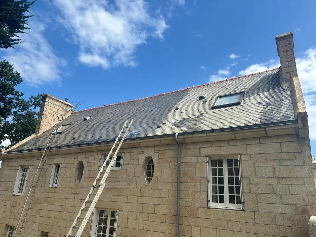 Chaque étape est réalisée avec soin, en tenant compte des spécificités de votre toiture, pour éliminer mousses, lichens et saletés, et appliquer, si besoin, un traitement hydrofuge protecteur. - Contrôle qualité final